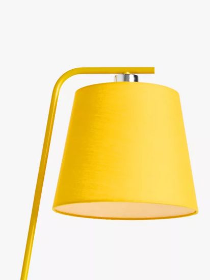 • Just the right size for your reading nook, our floor lamp has a compact base and a leaning profile so that the shade can hang over your chair and cast light exactly where you need it. The fabric lampshade diffuses the light to enhance a warm glow. It's easy to assemble and available in a range of neutral or bold shades to complement your existing furniture or make an impact in your space.